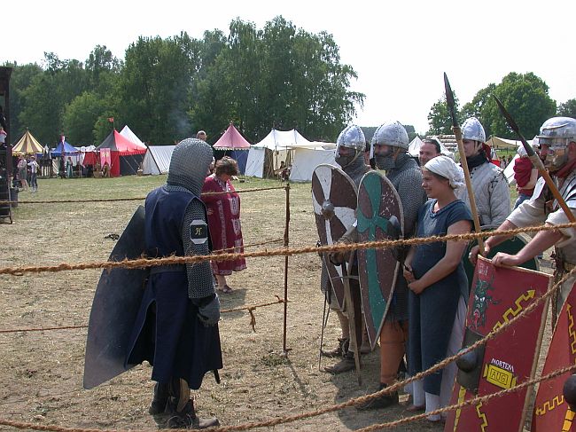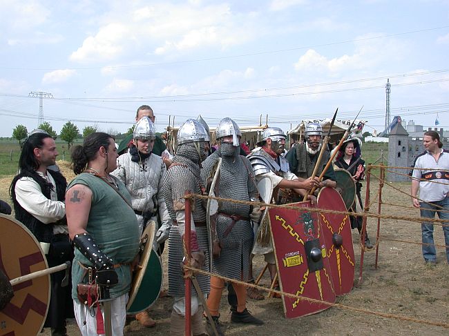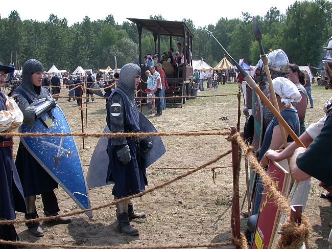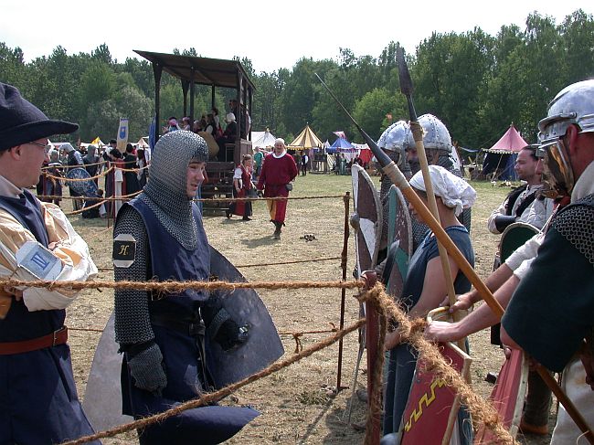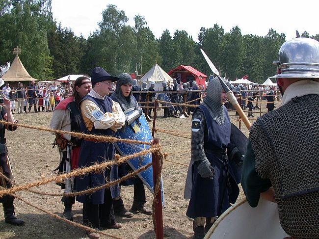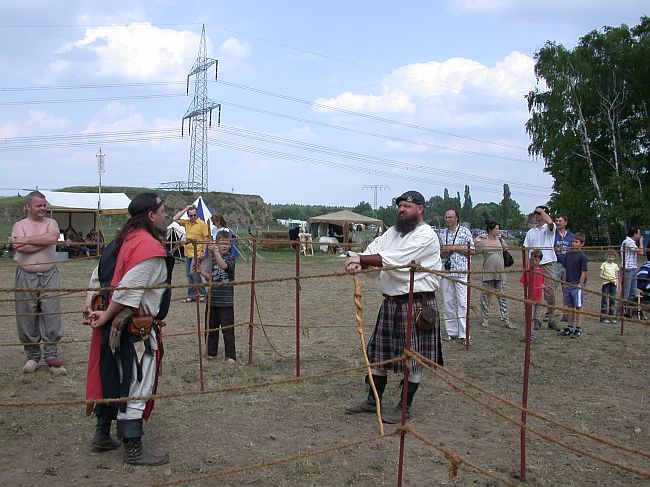 Kurze Vorgeschichte: Die Berliner Rittergilde lief am Sonntag nachmittag mit einem großen Tross und viel Tam Tam auf dem Turnierplatz auf und begannen mit ihrer Kampfshow. Ein paar alte Kämpfer waren offenbar der Meinung, hier würde ein wenig zu dick aufgetragen. |
