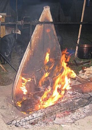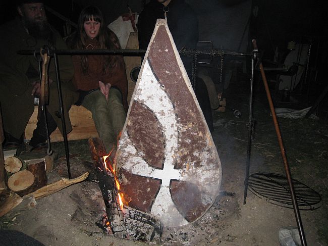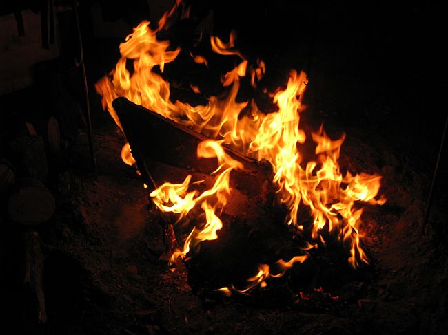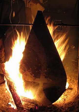 Alex übergibt seinen treuen alten Schild dem Feuer.