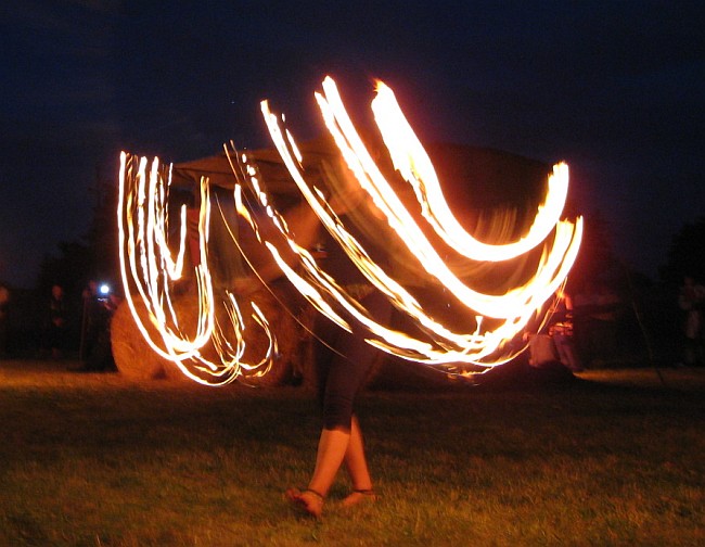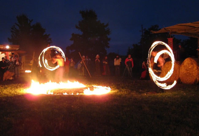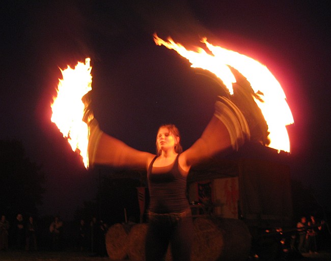 Die Feuershow in einer lauen Samstag Nacht