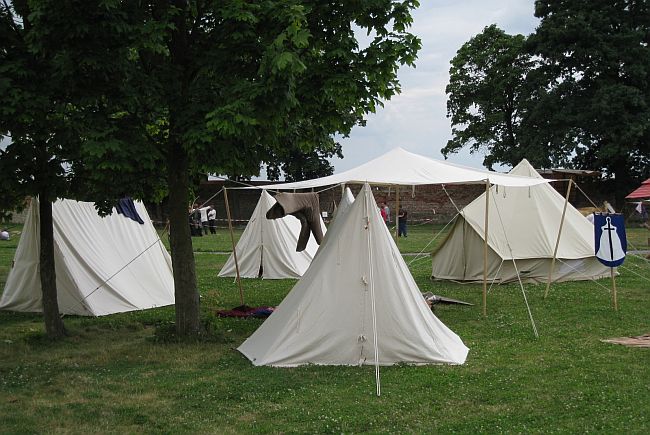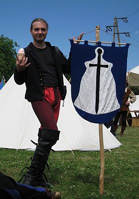 Nick präsentiert voller Stolz Unser Lager in Jerichow mit 4 Zelten, Banner und neu, jawoll, einem 3 x 4 m Sonnensegel |