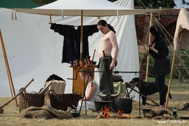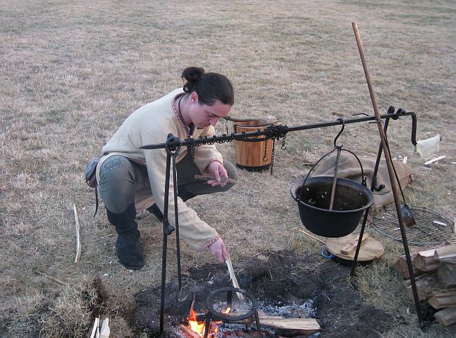 André stochert gelangweilt in den Resten des Feuers, welches Talba zum Färben brauchte |
