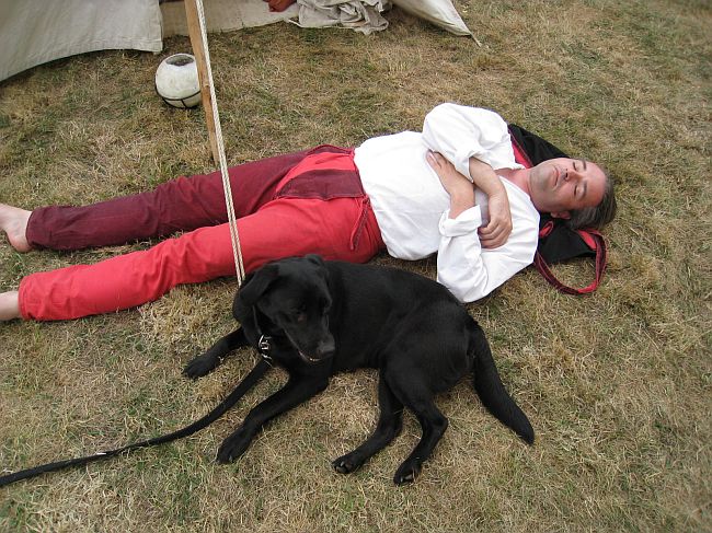 Die Hitze ist groß. Nick entspannt mit unserem treuen Lagerhund Yeesha im Schatten des Sonnensegels |